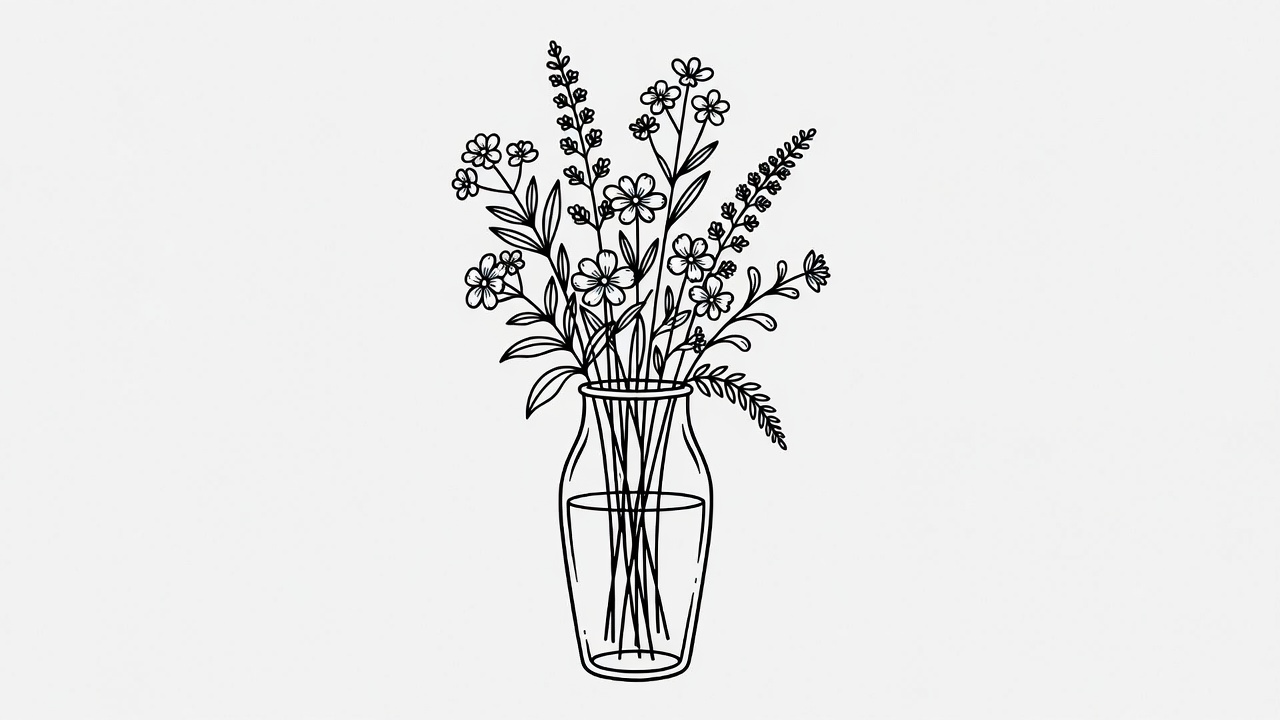Line Art Flowers in Glass Vase