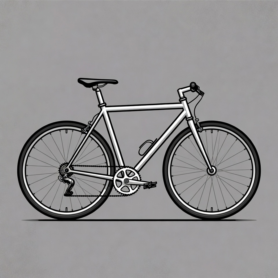 bicycle frame, bike, chain, clipart, cycling, gray background, handlebars, illustration, isolated background, line art, minimalist drawing, outline bike, pedals, road bike, simple bike, tires, vector art, water bottle, white bicycle, bicycle