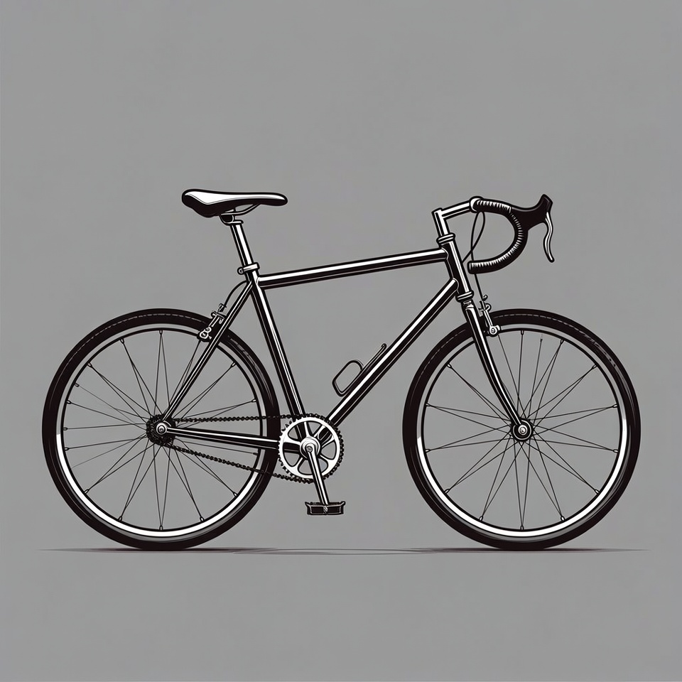 bike, black ink, chain, cycling, drop handlebars, frame, gray background, handlebars, illustration, isolated, line art, pedals, racing bike, road bike, seat, sport bike, tires, vector, wheels, bicycle