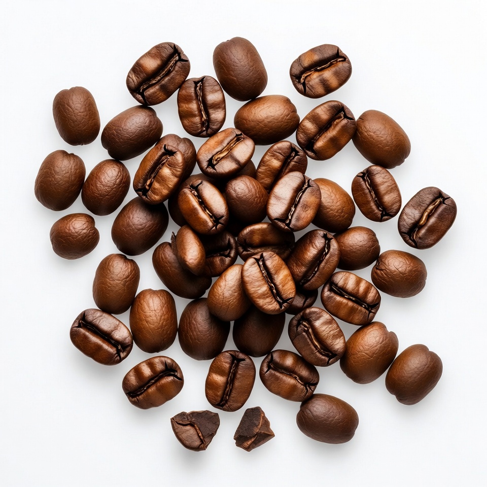arabica beans, bean cluster, bean pile, brew beans, brown beans, caffeine, coffee pile, coffee texture, food photography, fresh beans, isolated background, organic coffee, roasted beans, top view, coffee beans