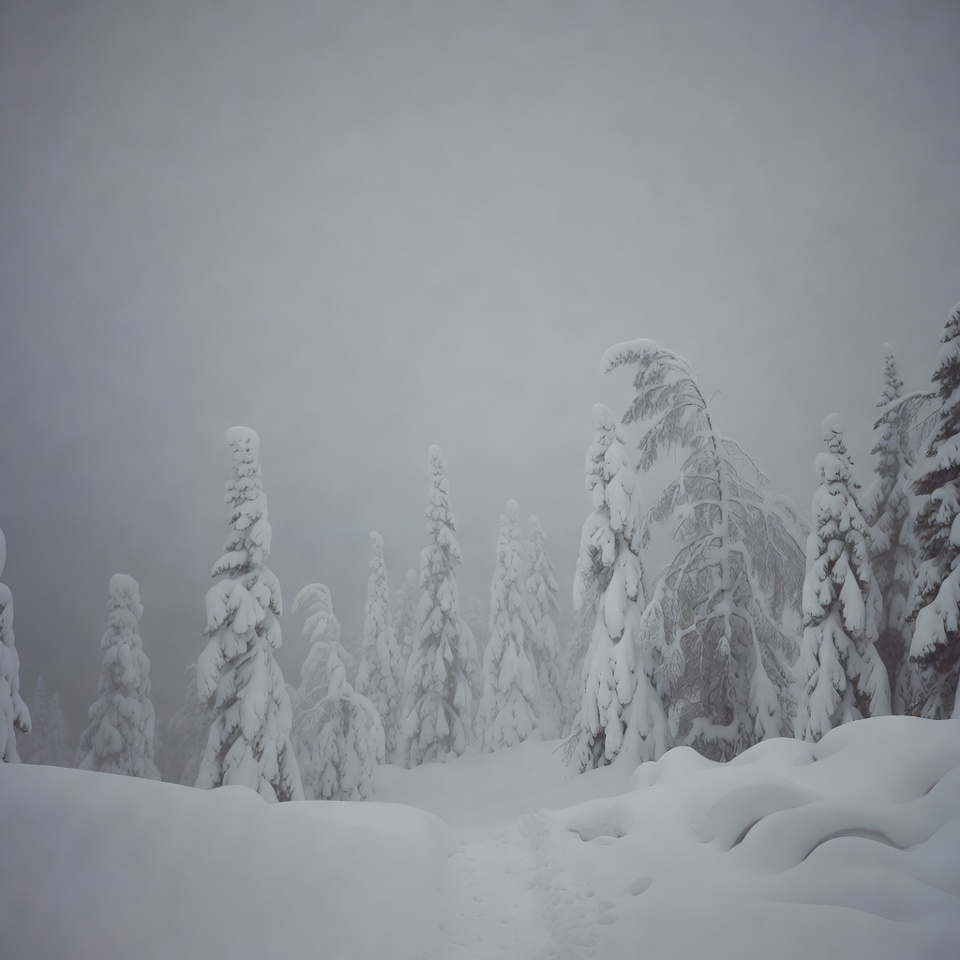 cold weather, evergreen trees, fog, foggy trees, forest trail, heavy snow, mist, misty woods, mountain forest, nature scene, pine forest, snow path, snowdrifts, snowy path, snowy pines, white forest, white pines, winter landscape, winter woods, snowy trees