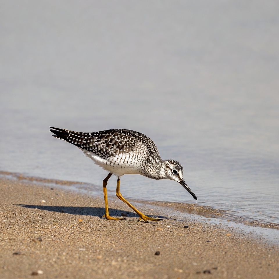 beach, bird, foraging, gray feathers, nature, ocean shore, orange legs, sand, sandpiper, seashore, shorebird, small bird, speckled feathers, thin bill, wading bird, water, wet sand, white belly, wildlife, semipalmated sandpiper