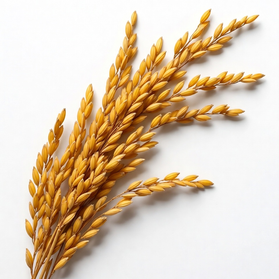 agriculture, cereal crop, closeup, farming, food crop, golden rice, grains, harvest, isolated, natural, organic, paddy, rice grains, rice plant, rice stalks, staple food, stems, white background, yellow, rice