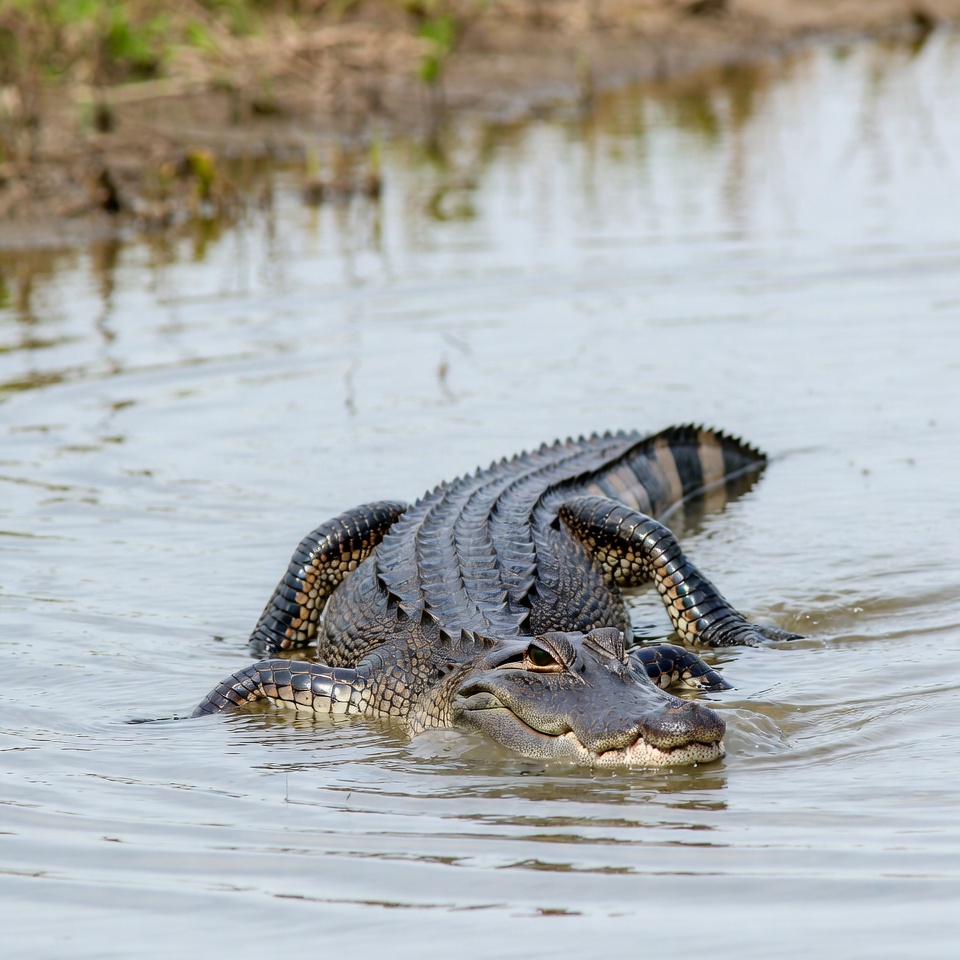 Alligator swimming in swamp water