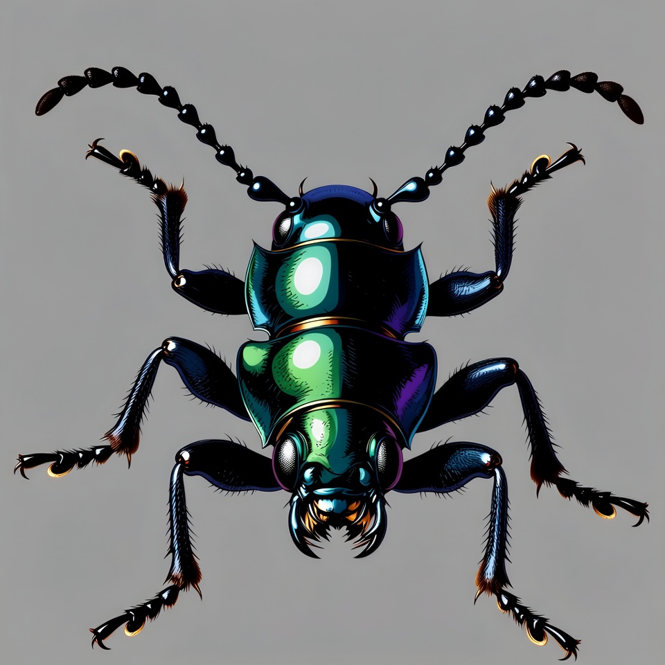 antennae, arthropod, beetle, beetle closeup, black legs, bug, coleoptera, detailed illustration, digital art, green beetle, illustration, insect, isolated background, legs, mandibles, metallic green, nature insect, shiny beetle, shiny exoskeleton, ground beetle