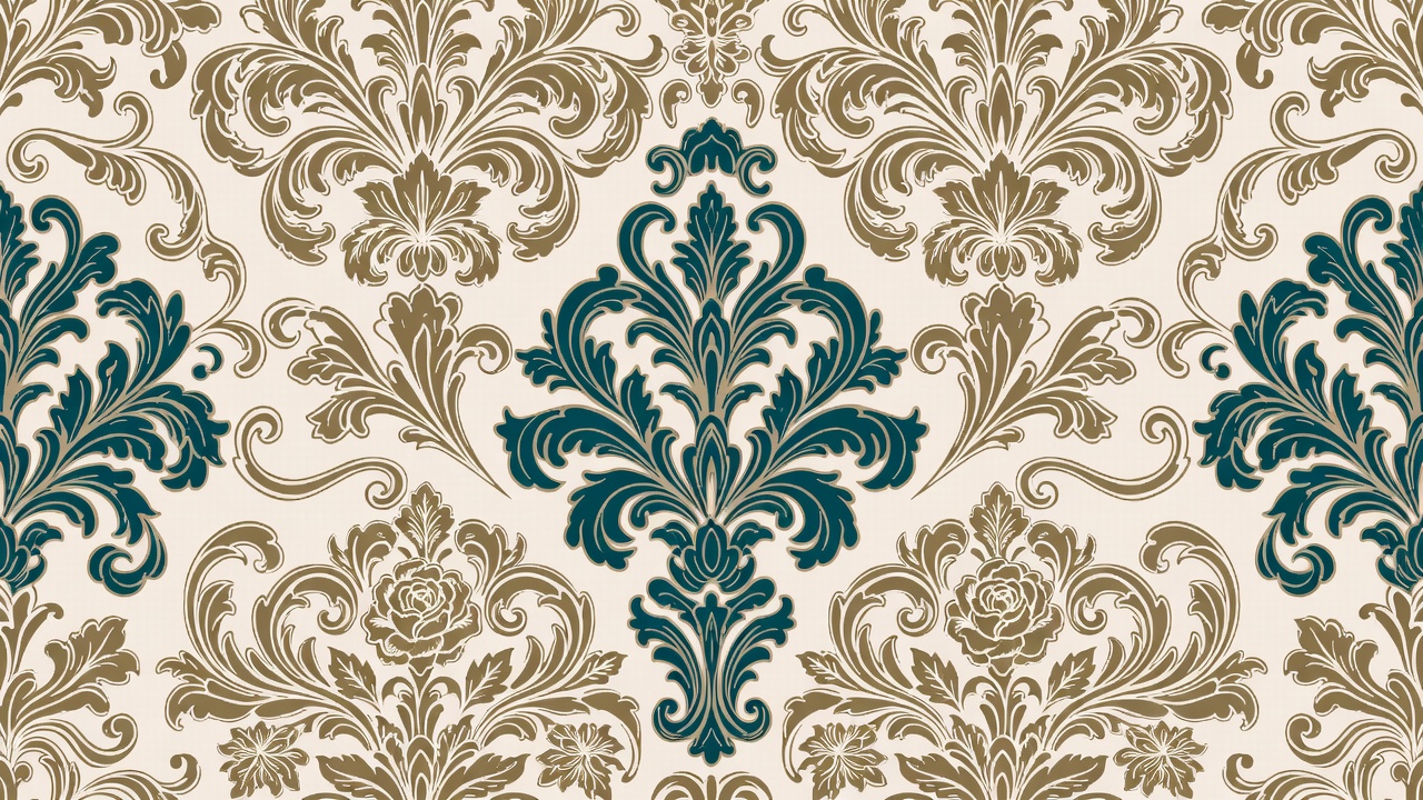 baroque design, clipart, cream background, elegant design, floral motif, illustration, isolated background, luxury texture, ornate pattern, rose flowers, seamless pattern, swirling leaves, teal gold, vector pattern, vintage wallpaper, wallpaper, damask pattern