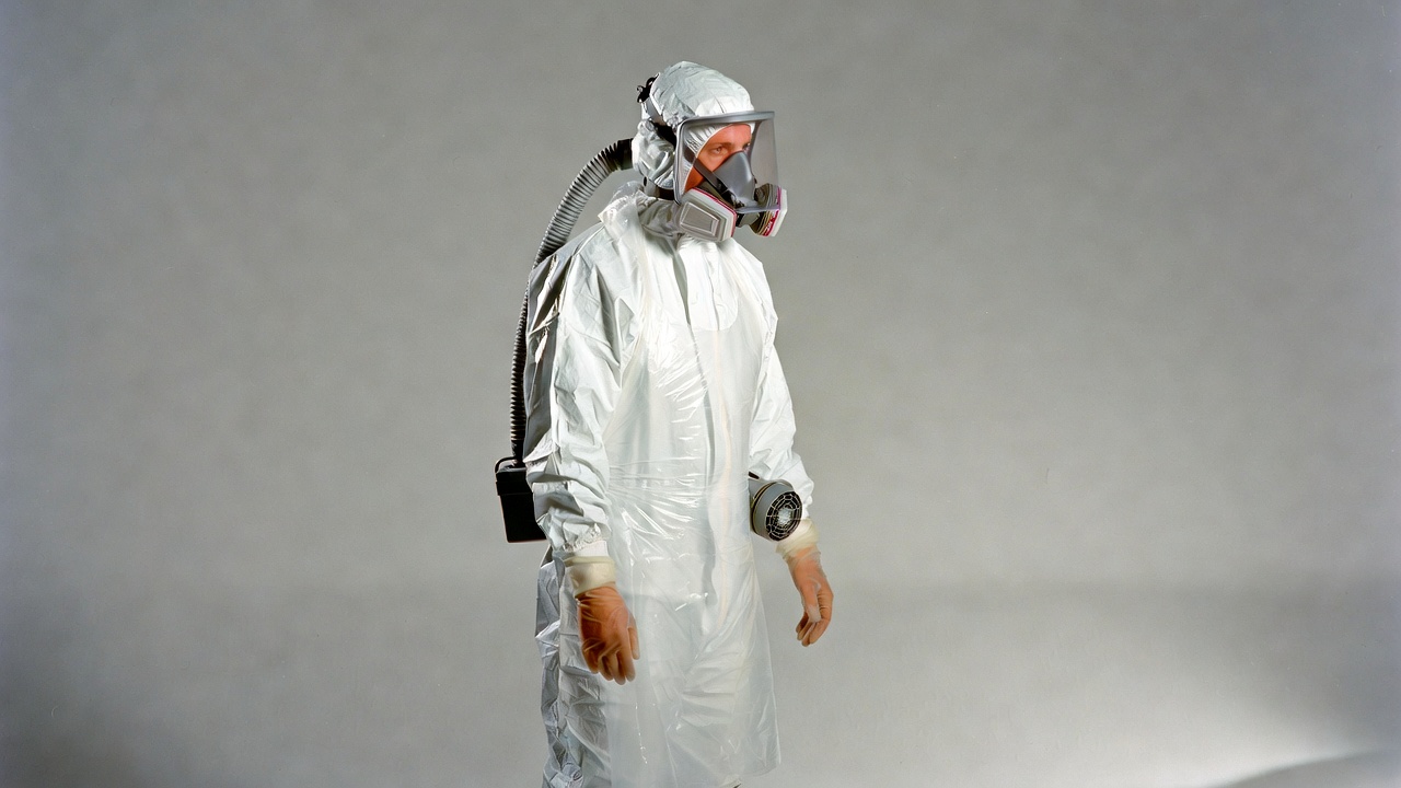 Man in hazmat suit with respirator