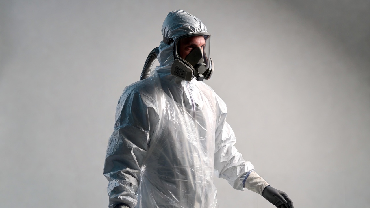 Man in hazmat suit with respirator