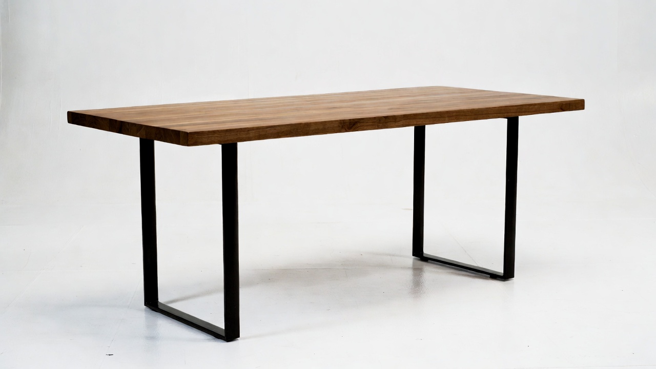 Wooden Table with Black Metal Legs