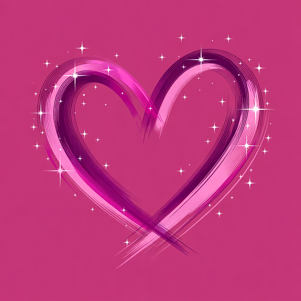brush strokes, clipart, digital art, glowing heart, illustration, isolated background, love symbol, pink background, pink heart, purple accents, romantic heart, shiny heart, sparkling heart, stars, vector art, heart