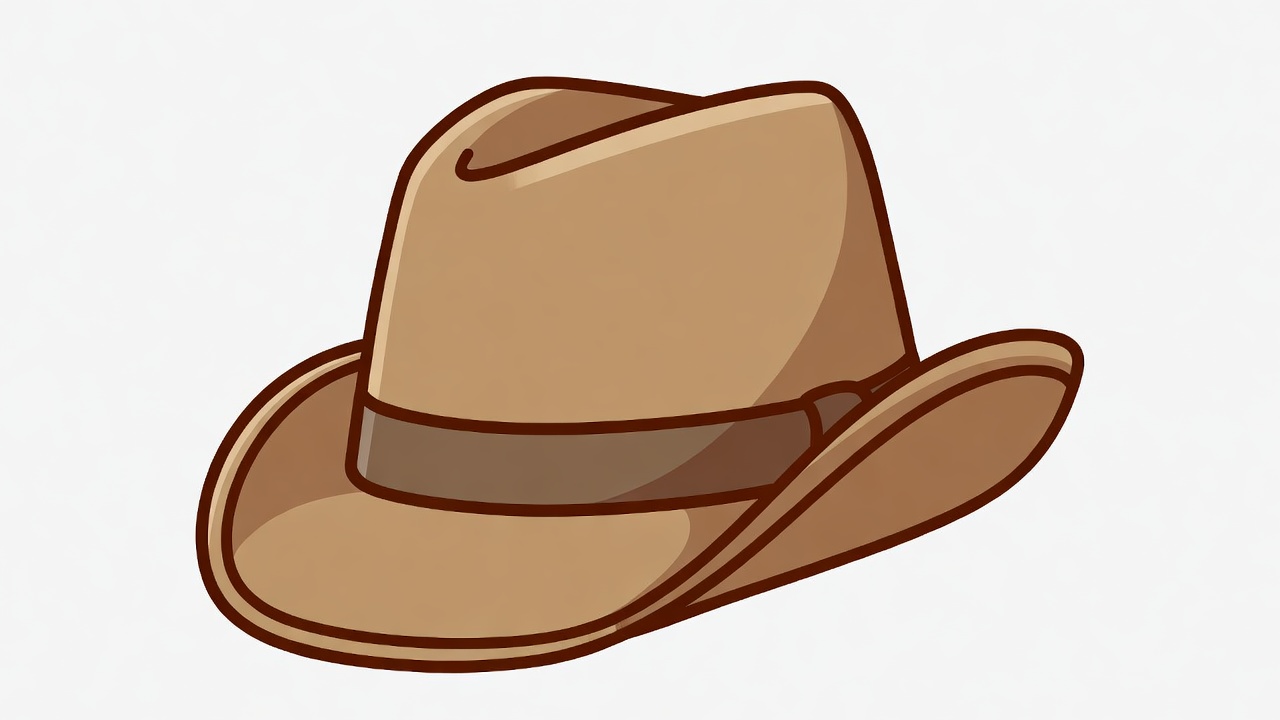 brown hat, cartoon hat, clipart, cowboy accessory, hat band, illustration, isolated background, ranch hat, tan hat, vector hat, western hat, wide brim, cowboy hat