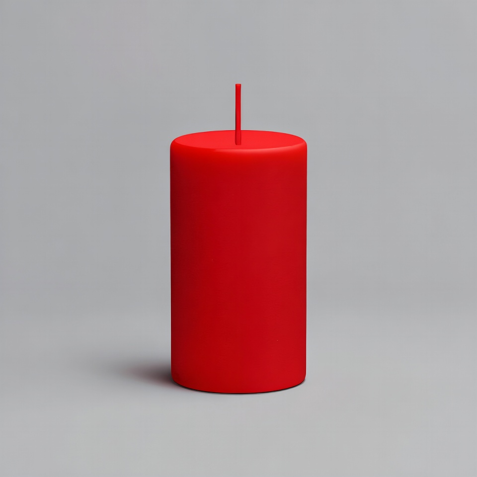 3D render, black wick, candle flame, candle wick, cylindrical candle, decorative candle, gray background, isolated background, pillar candle, red wax, tall candle, unlit candle, votive candle, wax candle, red candle