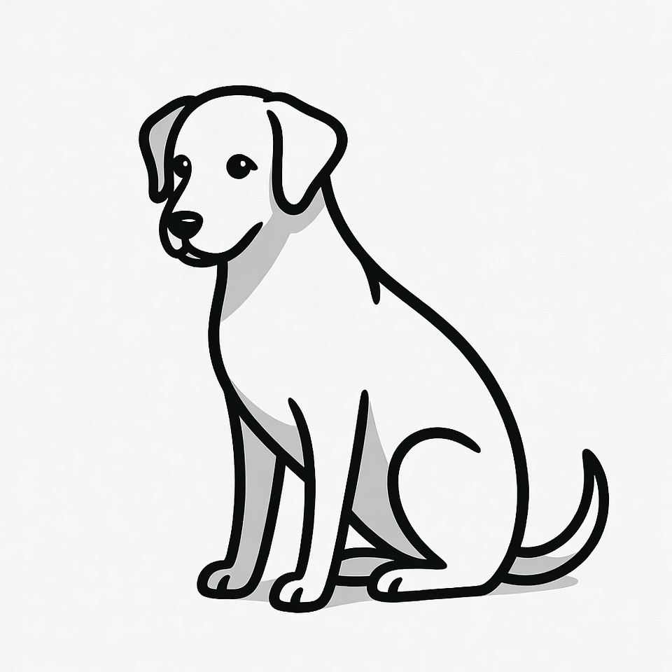 Labrador Retriever, animal, black and white, canine, clipart, cute dog, illustration, isolated background, line art, outline drawing, pet, puppy, simple illustration, sitting dog, vector art, dog