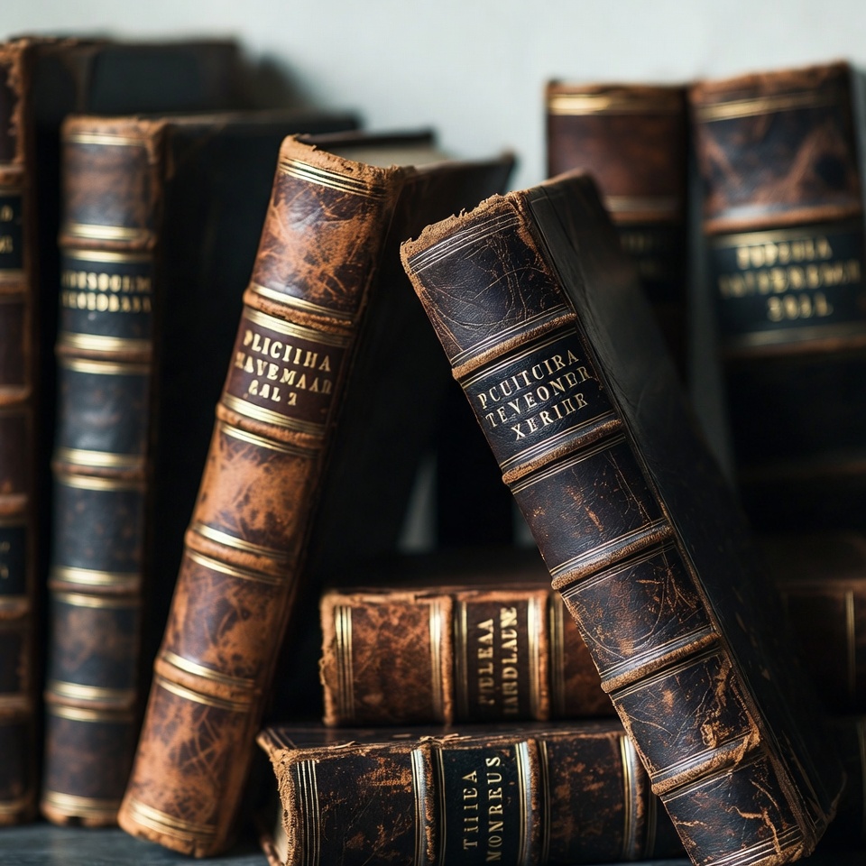 aged pages, ancient script, book collection, book spines, book stack, bookbinding, classic literature, dark background, gold lettering, hardcover books, historical books, leather books, leather bound, library books, old books, reading material, scholarly books, vintage books, worn covers, antique books
