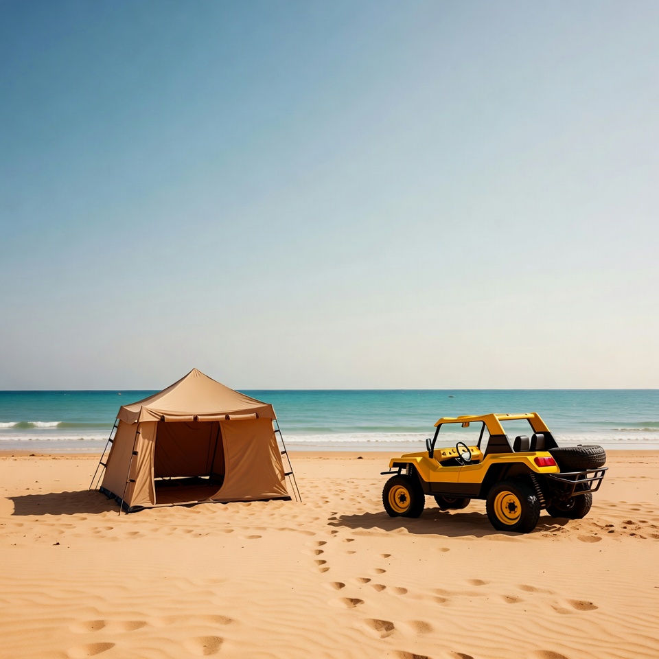 Yellow Dune Buggy and Tent on Beach