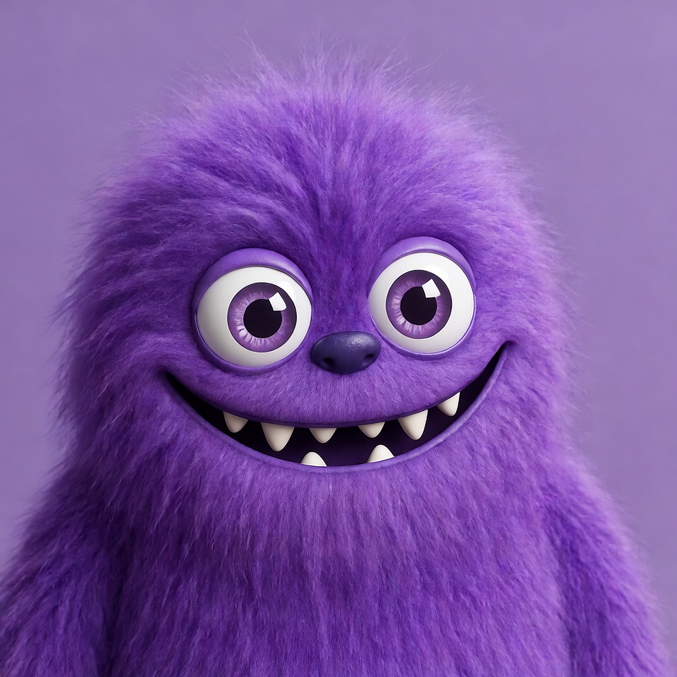 Purple furry monster grinning