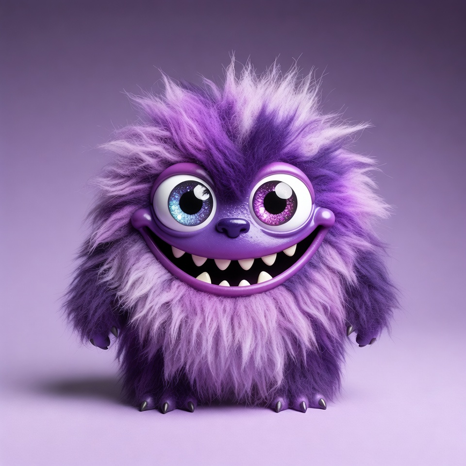 3D monster, beast, big eyes, cartoon monster, claws, clipart, creature, cute monster, digital art, fluffy monster, furry, furry creature, grinning monster, illustration, isolated background, kawaii, monster face, pink fur, playful, purple fur, sharp teeth, spooky cute, vibrant, whimsical, wide smile, purple monster