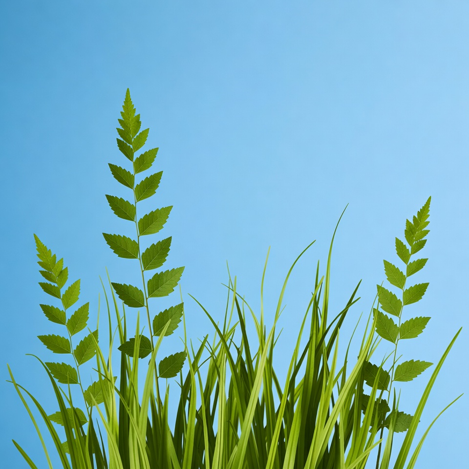 Green Ferns on Blue Background
