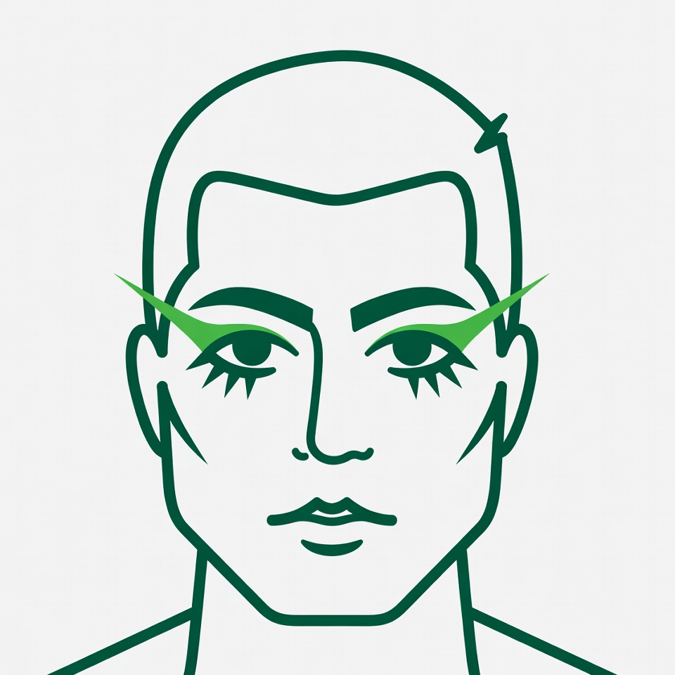 beauty, bold brows, clipart, eyelash extensions, eyes, face, graphic design, green eyelashes, illustration, isolated background, lashes, line drawing, makeup, male, short hair, simple vector, man
