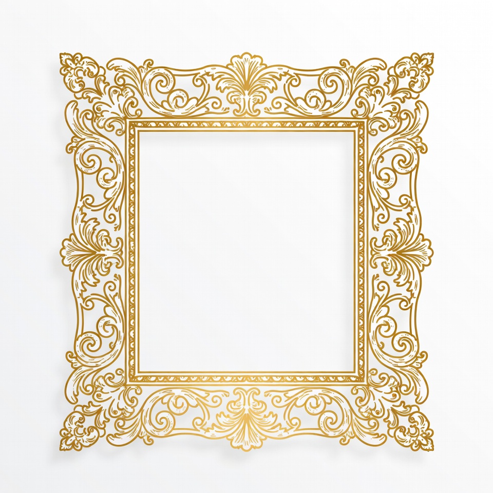 art frame, baroque frame, clipart, decorative border, elegant frame, empty frame, filigree design, floral motifs, golden border, illustration, luxury frame, ornate frame, picture frame, rococo style, swirling patterns, symmetrical design, vector art, vintage frame, white background, gold frame