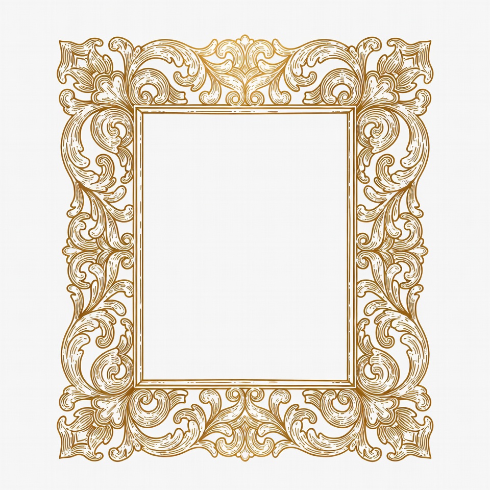 baroque frame, clipart, decorative frame, elegant frame, empty frame, filigree, floral design, graphic element, illustration, isolated background, luxury frame, ornamental frame, ornate border, photo frame, picture frame, rococo, scrollwork, vintage frame, white background, gold frame