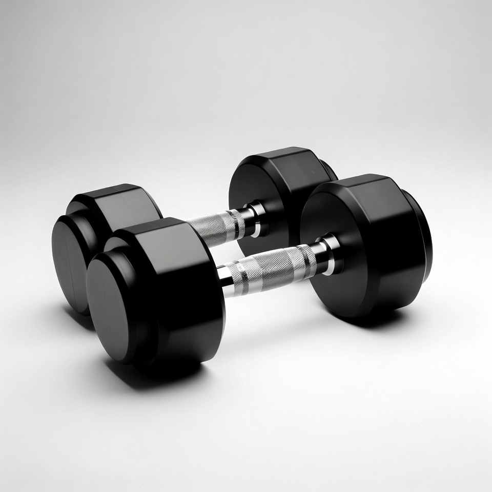 3D render, black dumbbells, exercise, fitness, gym equipment, hex dumbbells, hexagonal weights, isolated background, pair dumbbells, silver handles, strength training, weightlifting, weights, workout gear, dumbbells