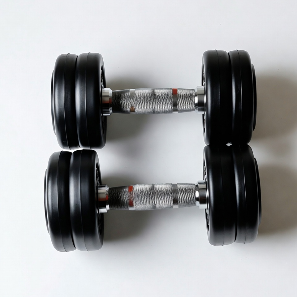 Pair of Black Dumbbells on White Background