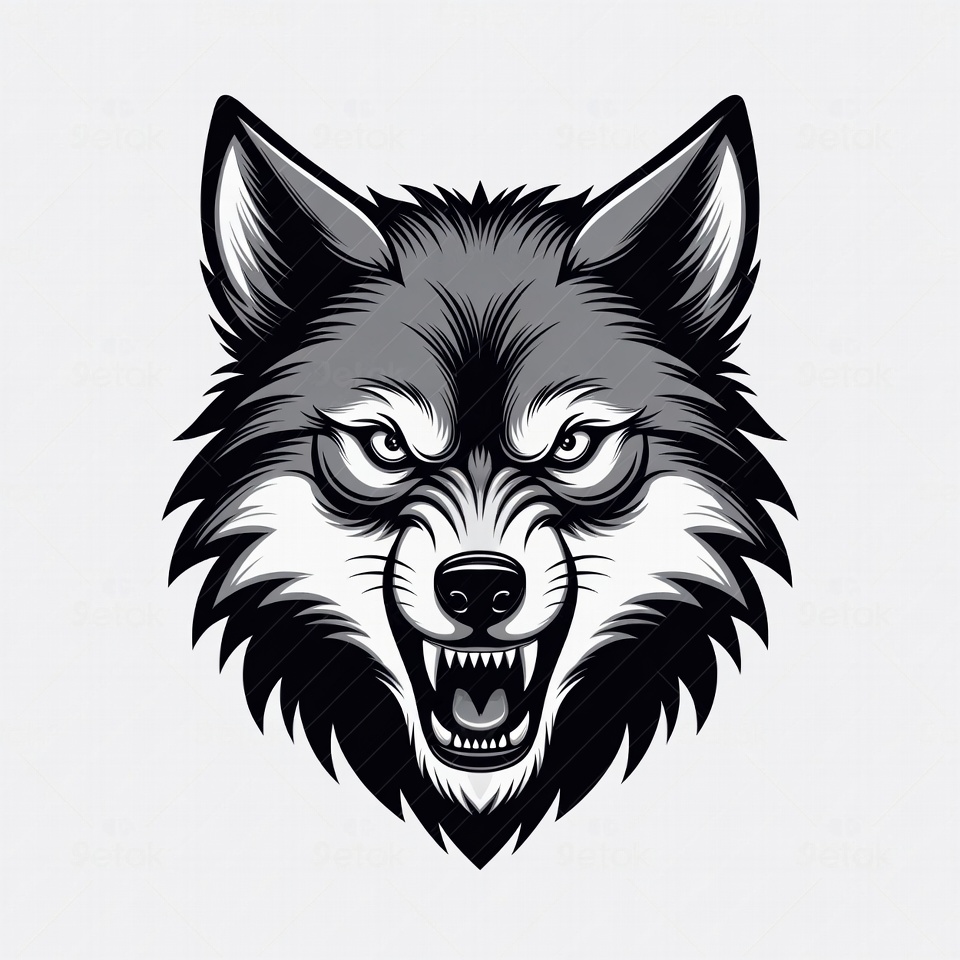 angry eyes, animal, black and white, clipart, fangs, fierce wolf, fur, graphic design, gray wolf, growling wolf, illustration, isolated background, sharp teeth, snarling wolf, vector art, wolf face, wolf head, wolf