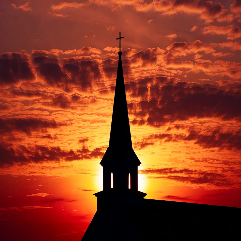 Church Steeple Silhouette at Sunset