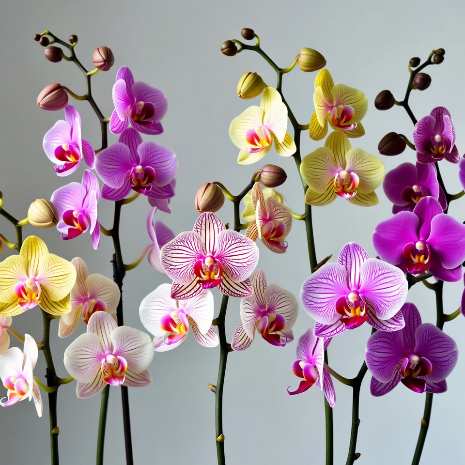 Colorful Phalaenopsis Orchids on Gray Background