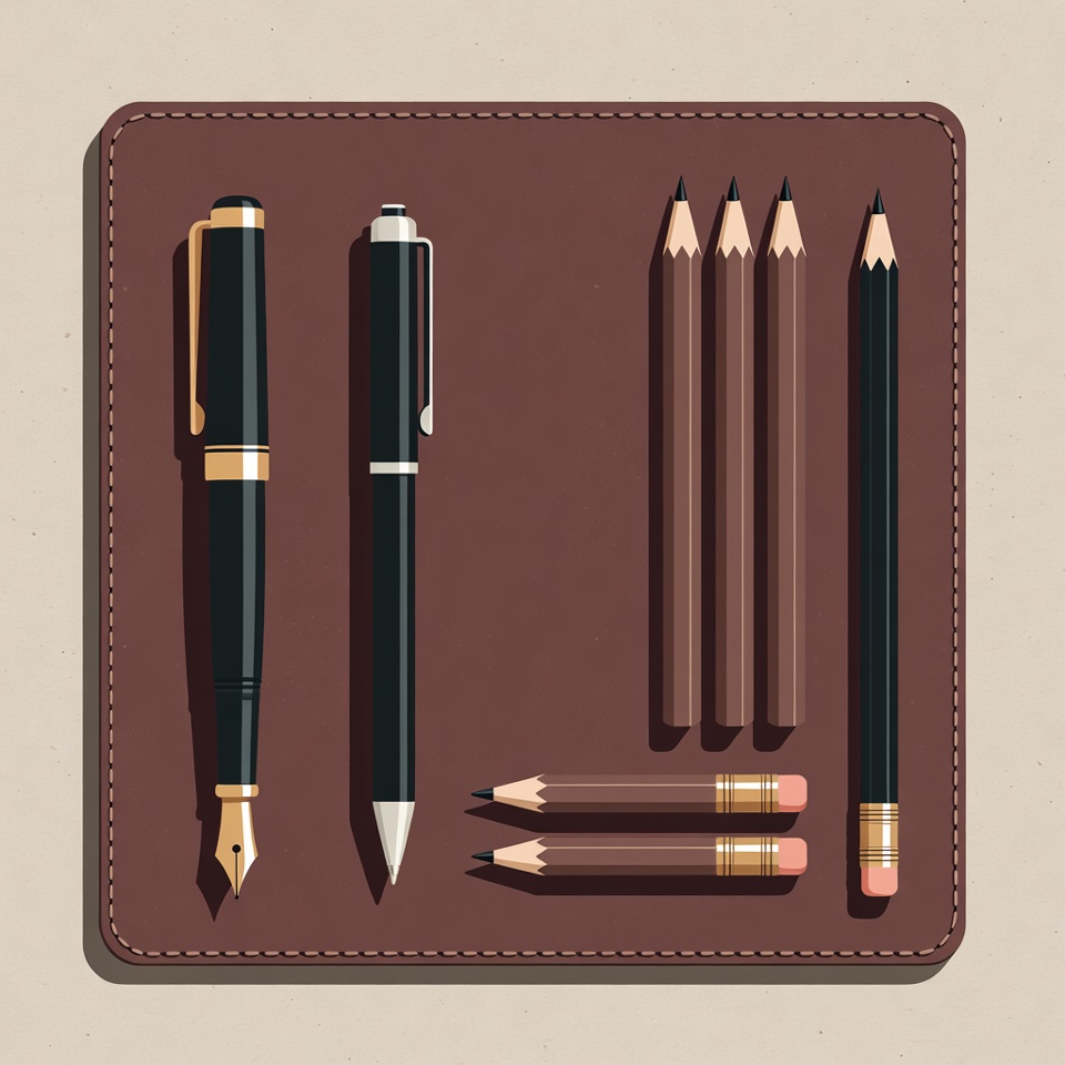 Pens and Pencils on Leather Mat