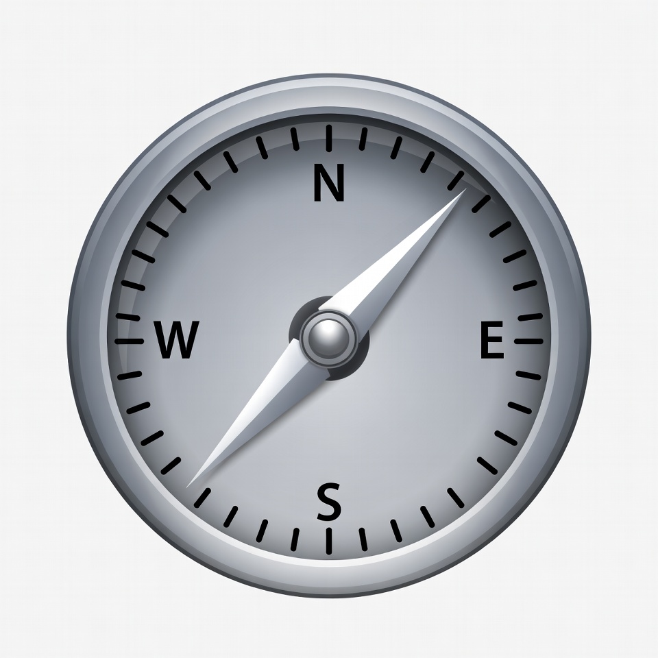 Silver Compass Pointing North