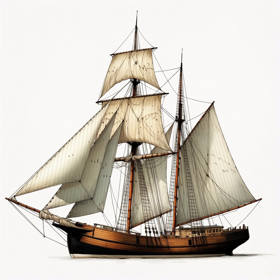 boat, brigantine, clipart, full sails, historical ship, illustration, isolated background, maritime, masts, nautical, ocean ship, rigging, sails, seafaring, ship, tall ship, vessel, white sails, wooden ship, sailing ship