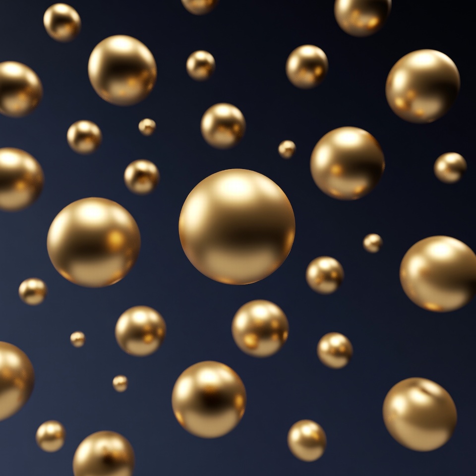 3D render, CGI spheres, abstract art, black background, dark backdrop, digital art, floating objects, floating orbs, glossy balls, gold balls, gold color, gold orbs, golden globes, isolated background, luxury gold, metallic balls, reflective surface, shiny spheres, spherical shapes, golden spheres