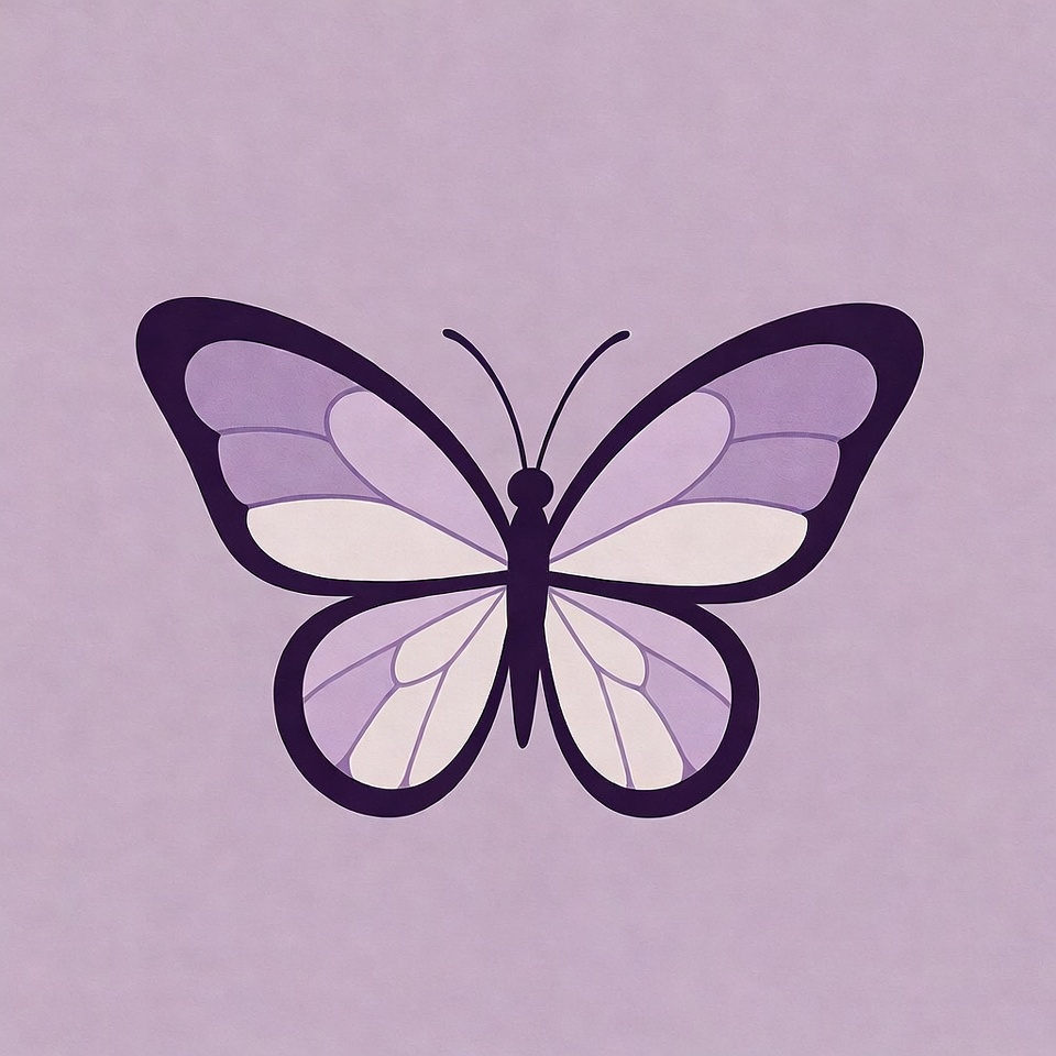 A vibrant purple butterfly with shaded wings in gradients of lavender and deep violet is depicted in a flat illustration style. The butterfly features black outlines and symmetrical wing patterns on a solid light purple background. It is centered and isolated against the background.
