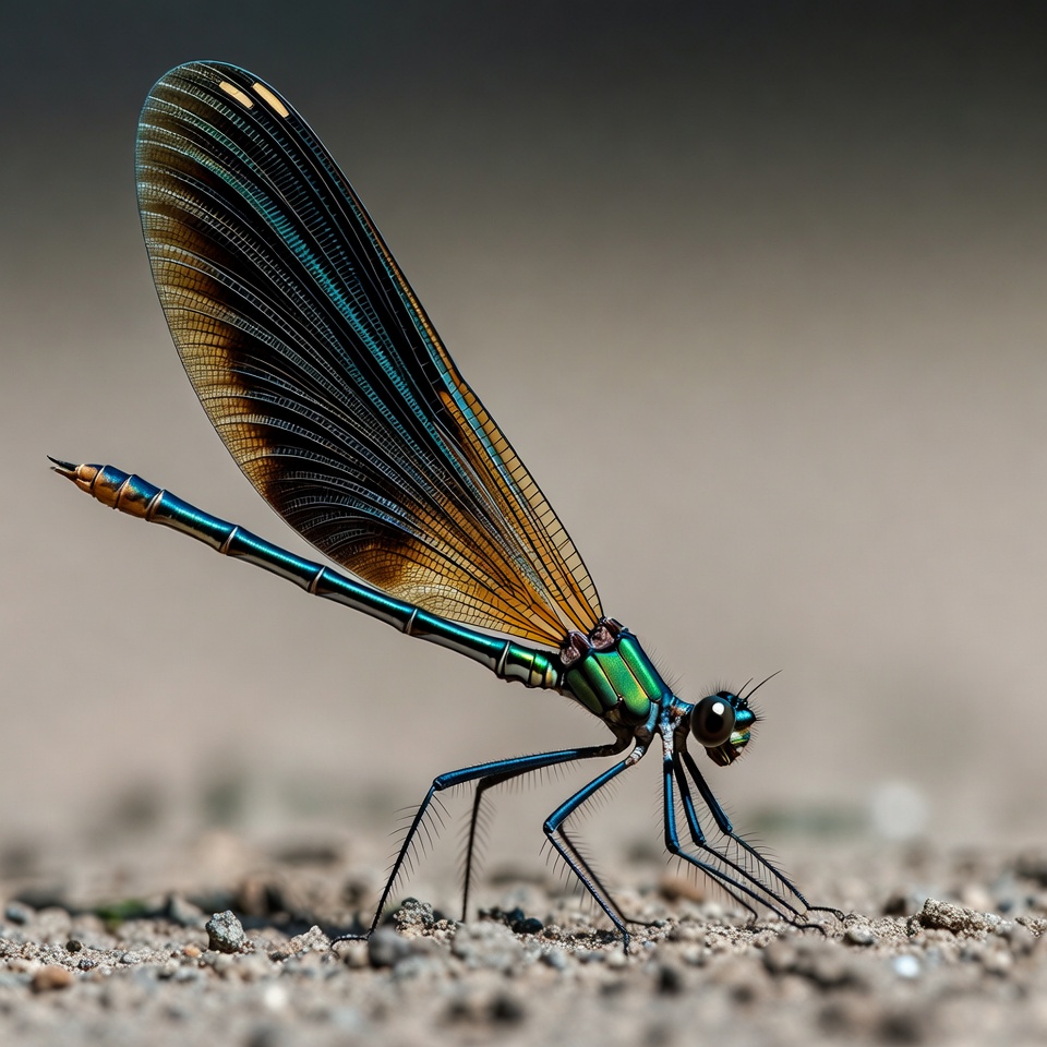 Colorful Dragonfly on Sandy Ground