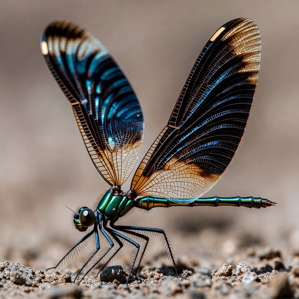 Colorful Dragonfly on Sandy Ground