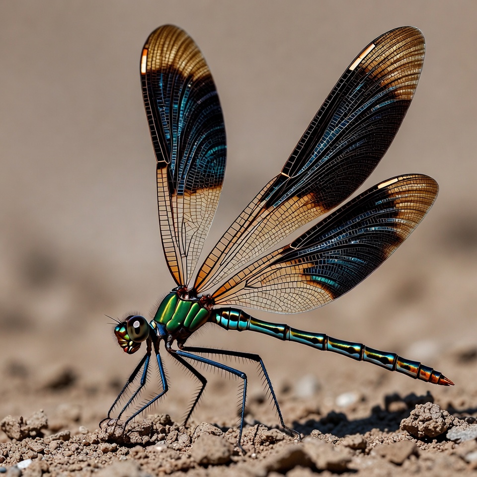 Colorful Dragonfly on Sandy Ground