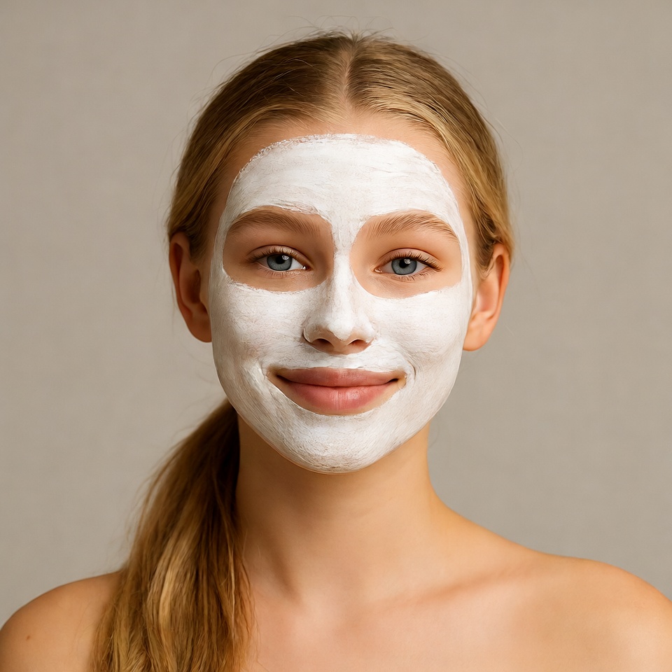 White, beauty mask, beauty treatment, blonde hair, blue eyes, clean skin, closeup, face cream, facial mask, female, happy expression, isolated background, ponytail, portrait, skincare, smiling, spa mask, white face mask, young woman, woman