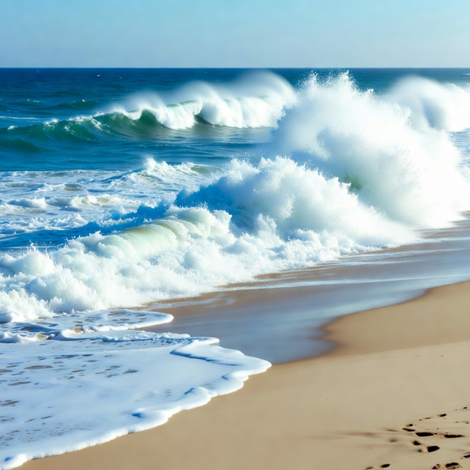 Ocean Waves Crashing on Sandy Beach