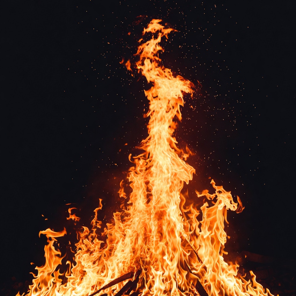 black background, blazing fire, bonfire, burning, campfire, combustion, dark background, embers, fiery, fire flames, flame column, flames, glow, heat, inferno, intense fire, isolated, orange flames, sparks, wildfire, yellow fire, fire