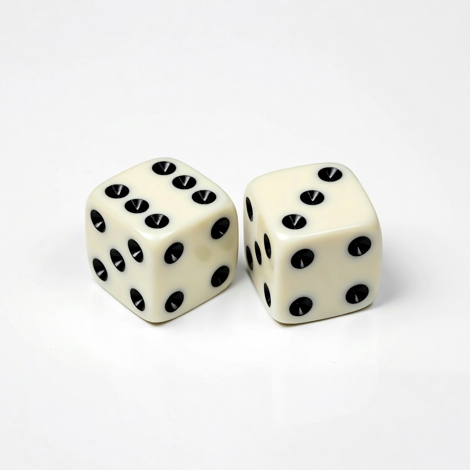 black dots, board games, casino dice, gambling, game pieces, gaming dice, isolated background, six-sided dice, two dice, white background, white dice, dice