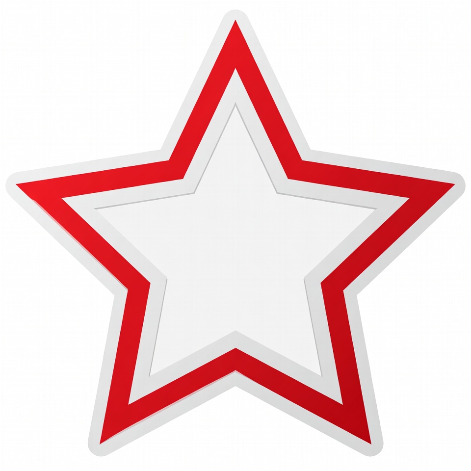 badge, clipart, five-pointed star, graphic, illustration, isolated background, outline star, red outline, red star, star shape, sticker, symbol, white fill, white star, star