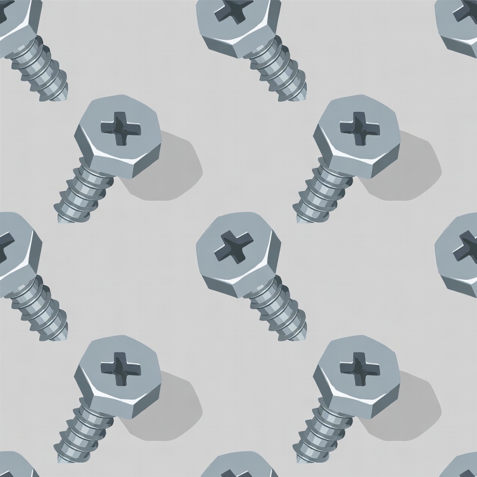 A seamless repeating pattern of metallic gray hex head screws on a light gray background. The screws are rendered in 3D style with subtle shadows for depth. They are arranged in various orientations across the tiled surface.