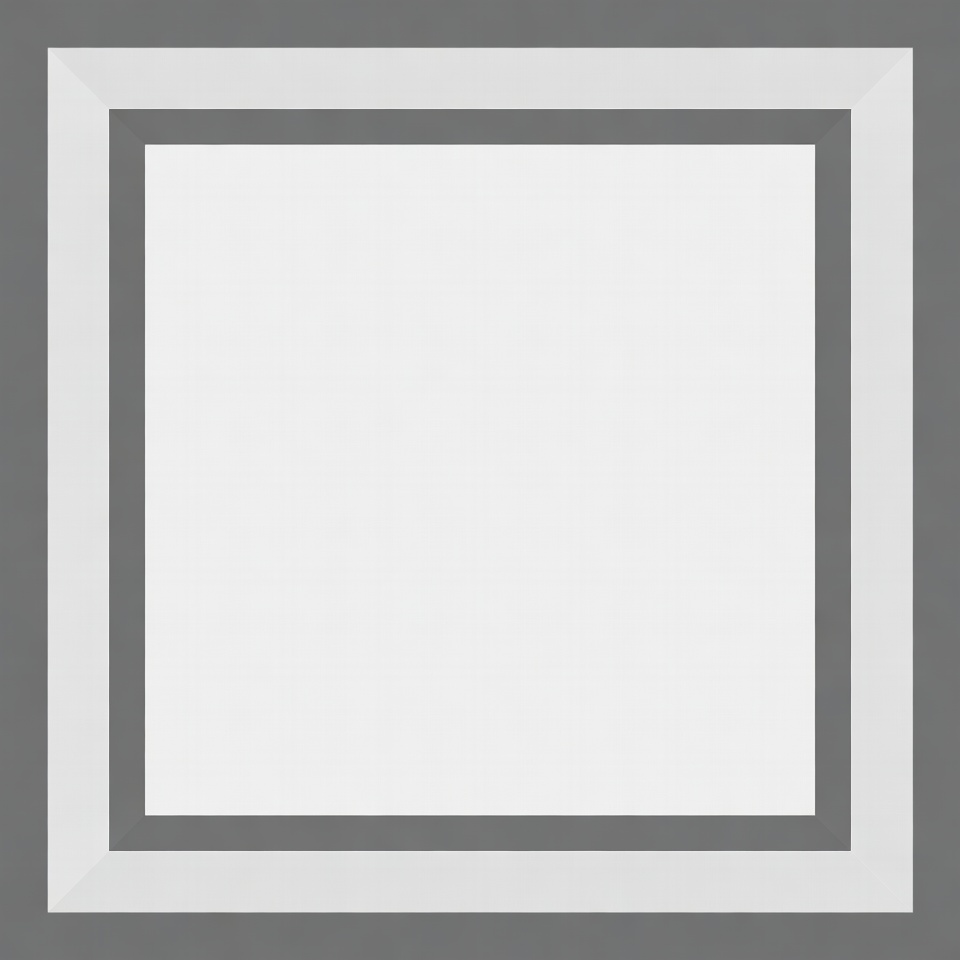 A crisp white square with a thin white inner border sits centered on a medium gray background. The image features a prominent white outer border framing the entire composition. The design is simple and minimalist with clean lines and high contrast.
