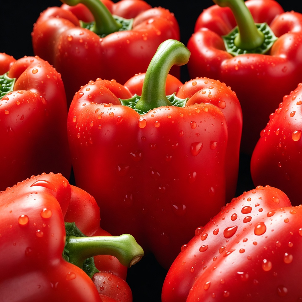 Fresh Red Bell Peppers with Water Droplets