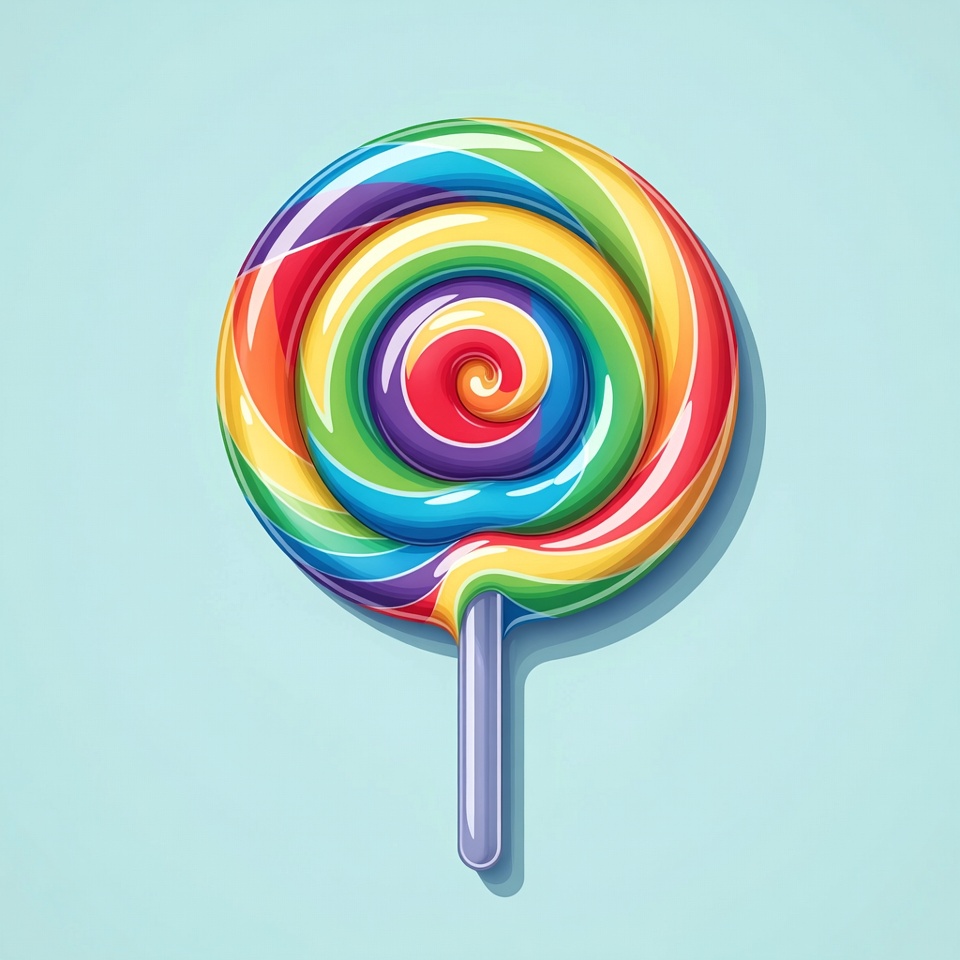 blue, candy, clipart, colorful, confectionery, delicious, fun, glossy, green, illustration, isolated background, orange, purple, rainbow, red, spiral, stick, sugary, sweets, swirl, treat, vector, vibrant, yellow, lollipop