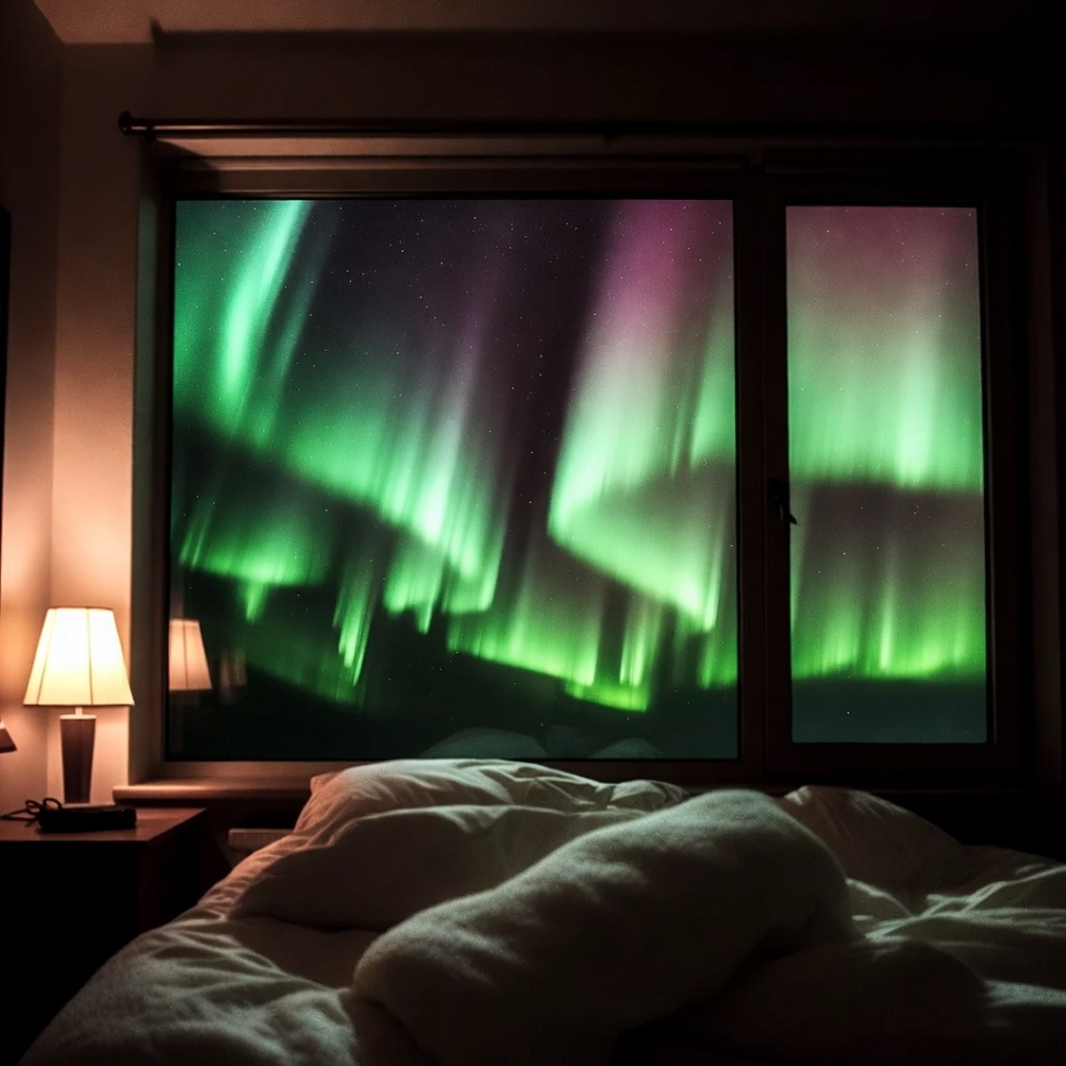 Aurora Borealis through Bedroom Window