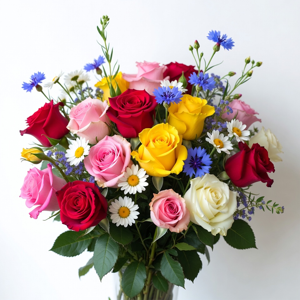 Colorful Rose Bouquet with Daisies