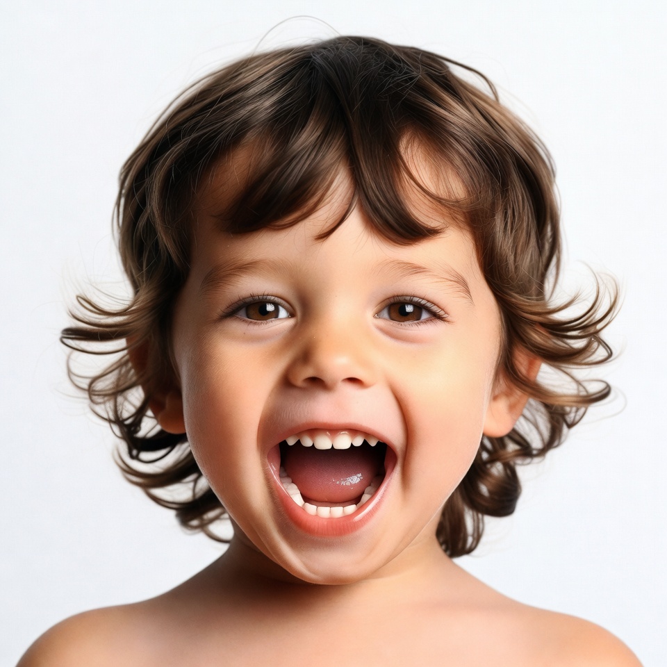 Multiracial, big eyes, boy, brown hair, child, curly hair, cute child, happy, joyful, laughing, male, open mouth, portrait, smiling, teeth, white background, young boy, toddler